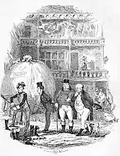 On the impact of the character, The Paris Review stated, "arguably the most historic bump in English publishing is the Sam Weller Bump."[1] Such was the popularity of the character that William Thomas Moncrieff named his 1837 burletta Samuel Weller, or, The Pickwickians after the main comic character in the novel, rather than on Samuel Pickwick himself.[5][6][7] Merchandise based on the character appeared, such as Sam Weller puzzles, Weller boot polish and Weller joke books.[1]