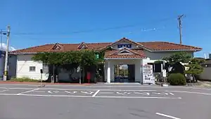 The station consists of a side and an island platform serving three tracks. A station building houses a waiting room and a JR ticket window (with a Midori no Madoguchi facility). Access to the island platform is by means of a footbridge. A siding runs on the far side of the island platform beyond track 3. Parking is available on the station forecourt and a large bike shed is provided.[2][3][5]