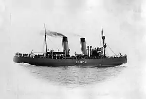 | Engines: | Two triple-expansion steam engines, 1,200 ihp (890 kW) (bow) and 1,400 ihp (1,000 kW) (stern) |