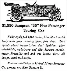 The Sampson was an early automobile manufactured by the Alden Sampson Manufacturing Company of Pittsfield, Massachusetts in 1904. It was based on the 1903 Moyea automobile for which the Alden Sampson Company had built the chassis. The Sampson was built again in 1911 by United States Motors, Alden Sampson Division, in Detroit, Michigan.