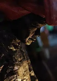 In Chinese, these women are referred to as Hong Tou Jin (红头巾; 紅頭巾; hóng tóu jīn), which means "red bandana", because of the red cloths they wrapped around their heads. It was this headdress that would become a trademark feature. The red cloths around their heads also kept their hair clean while they work as dust and debris can dirty their hair, since they washed their hair only once a month. The headdress was a square piece of cloth starched stiff and folded into a square-shaped hat.[3] The colour red was used because it caught attention easily, thus reducing the chances of accidents occurring at the construction site. Besides its shading properties, the headdress was useful in storing items such as cigarettes, matches and money. Those who wore the blue version of the headgear typically hailed from Sun Yap, China, but could also be utilised uring a period of mourning, after which the women reverted to their original red headgear.