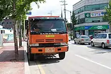 Samsung Commercial Vehicles (Korean: 삼성상용차,[4] IPA: [samsʌŋ saŋjoŋtɕʰa]) was a South Korean trucks, bus and construction equipment manufacturer established by the Samsung Group in 1996 and closed in 2000 as a result of the 1997 Asian financial crisis.[5][6][7] The company was formed through a corporate spin-off from Samsung Heavy Industries.