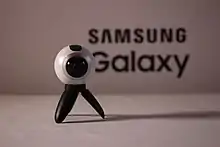 The Samsung Gear 360[1] is the first 360 degree camera by Samsung Electronics. It was released as a part of the Samsung Gear family of devices. It uses two cameras to take 360° photos and videos.