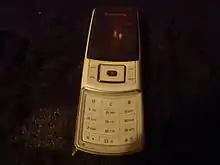 The Samsung M620 is a bar phone with two unique sides. One side is a typical numeric keypad with a small screen for making phone calls, navigating contacts, and sending text messages. The other side of the phone is specifically for playing music, surfing the web, and viewing interactive content. This side also includes a touch sensitive pad for menu navigation. The phone also includes a 1.3 megapixel camera, a microSD slot for up to 2 gigabytes of storage, and Bluetooth compatibility for wireless communication.[2]