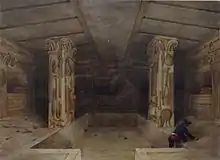 From 1842 to 1844 Ainsley, on three separate trips, accompanied George Dennis in investigating tombs and monuments from ancient Etruria, the Etruscan civilization.[2] From 1844 to 1847 Dennis, unaccompanied by Ainsley, continued to travel in Italy and investigate the ruins and cemeteries of Etruria. In 1848 the British Museum published a 1,085 page treatise Cities and cemeteries of Etruria, with text by Dennis (partly based upon notes by Ainsley) and sketches by Dennis and Ainsley.[3]