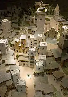 The museum presents 10 main galleries. The Via Francigena and its routes of pilgrimage during the Middle Ages exhibition room introduce the large reproduction 1:100 scale of the city of San Gimignano during the 14th century, entirely hand-made in ceramic by Michelangelo and Raffaello Rubino. Several deepening and details of the city and rural life, as well as descriptions about the various arts and professions of the time are represented in the other galleries.