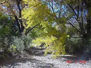 The average precipitation on the refuge is 13 inches (330 mm) annually, although it is highly variable ranging from about 7 to 25 inches per year. Multi-year droughts are frequent. Most precipitation comes in the summer. At least 10 springs and spring complexes on the refuge provide water for wildlife and create riparian zones with cottonwood, willow, and ash trees. Some of the springs have sufficient flow to create live streams that run for several hundred yards before becoming dry washes with water only after major rainstorms. The springs are located at elevations of 4,900 feet (1,500 m) to 6,000 feet (1,800 m) in elevation.[4]