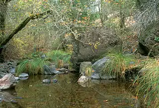San Anselmo Creek, along with its Sleepy Hollow and Cascade creeks tributaries, is the principal steelhead trout (Oncorhynchus mykiss) contributor of the Corte Madera Creek watershed.[4] Although short on water by late summer, Cascade Creek is considered to have the best trout habitat in the watershed.[5] Rich electrofished five species of fish in San Anselmo Creek in 1999 of which rainbow/steelhead trout were the most abundant, followed by threespine stickleback, California roach, sculpin species, and Sacramento sucker.[6]