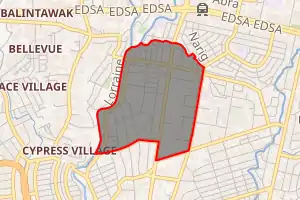 Originally around 2.5 km2 in area. It extended beyond Projects 7 and 8 as well as Timog Avenue area. Currently, it is composed of Barangays Damayan, Mariblo, Masambong, Paltok, Paraiso and San Antonio.