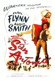 San Antonio is a 1945 American Western film starring Errol Flynn and Alexis Smith. The film was written by W. R. Burnett and Alan Le May, and directed in Technicolor by David Butler as well as uncredited Robert Florey and Raoul Walsh.