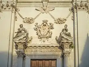 The present church was rebuilt starting in 1623. The order affiliated with the convent was expelled in 1797. An inventory from 1823 of the church, noted the following works remained:[2] By Paolo Brognoli