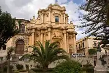 San Domenico is a Baroque-style, Roman Catholic church and monastery located on via Matteo Raeli facing Piazza XVI Maggio in the town of Noto (province of Syracuse) in the region of Sicily, Italy. Across the park with the Fontana di Ercole and Via Vittorio Emmanuele rises the town's opera house, now called the Teatro Comunale Tina di Lorenzo. The church is considered one of the masterworks of the architect Rosario Gagliardi.