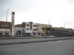 The simple-station San Façon-Carrera 22 is part of the TransMilenio mass-transit system of Bogotá, Colombia, opened in the year 2003.