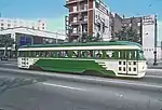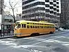 1006–1011, 1015, 1040, 1050-1053,1055-1063, 1070–1080 (32 streetcars)[9] | 1946–1952 | Cameron Beach | ![]() | 35 units were acquired by Muni since 1990 (1050–64; 1070–80) 1050–1063 were purchased from SEPTA 1070–1080 were purchased from NJ Transit 1054 has been retired, additional units in storage |