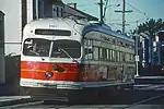 Muni's PCC streetcars are divided into one of five classes, sorted by fleet number and original service:[52]