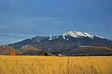 The San Francisco Peaks (Navajo: Dookʼoʼoosłííd, Spanish: Sierra de San Francisco, Hopi: Nuva'tukya'ovi, Western Apache: Dził Tso, Keres: Tsii Bina, Southern Paiute: Nuvaxatuh, Havasupai-Hualapai: Hvehasahpatch/Huassapatch/Wik'hanbaja, Yavapai: Wi:mun Kwa, Zuni: Sunha K'hbchu Yalanne, Mojave: 'Amat 'Iikwe Nyava)[2] are a volcanic mountain range in San Francisco volcanic field in north central Arizona, just north of Flagstaff and a remnant of the former San Francisco Mountain. The highest summit in the range, Humphreys Peak, is the highest point in the state of Arizona at 12,633 feet (3,851 m) in elevation. The San Francisco Peaks are the remains of an eroded stratovolcano.[3] An aquifer within the caldera supplies much of Flagstaff's water while the mountain itself is in the Coconino National Forest, a popular recreation site. The Arizona Snowbowl ski area is on the western slopes of Humphreys Peak, and has been the subject of major controversy involving several tribes and environmental groups.[4][5]