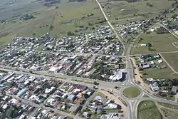 On 20 June 1901, its status was elevated to "Pueblo" (village) by the Act of Ley Nº 2.700.[1] On 27 June 1951 it was further elevated to "Villa" (town) by the Act of Ley Nº 11.689.[2] Finally, on 26 November 1976, its status was elevated to "Ciudad" (city) by the Act of Ley Nº 14.605.[3]