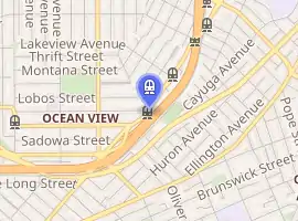 San Jose and Farallones is a light rail stop on the Muni Metro M Ocean View line, located in the Ingleside neighborhood of San Francisco, California. The station opened with the extension of the line to Balboa Park station on August 30, 1980.