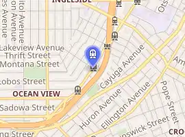 San Jose and Lakeview is a light rail stop on the Muni Metro M Ocean View line, located in the Ingleside neighborhood of San Francisco, California. The station opened with the extension of the line to Balboa Park station on August 30, 1980.