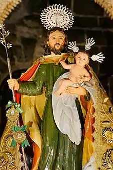 San Jose de Baras (Spanish: El Glorioso Patriarca Señor San José de Baras) is a centuries-old Roman Catholic wooden de tallado image of Saint Joseph cradling the Christ Child on one arm and a traditional staff with a sheaf of lilies on the other, standing atop a cloud base with the heads of two cherubs visible. This Josephian Image is venerated and enshrined in the Diocesan Shrine and Parish of St. Joseph in Baras, Rizal, Philippines.[1]