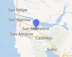 San Marcelino, officially the Municipality of San Marcelino, (Ilocano: Ili ti San Marcelino; Tagalog: Bayan ng San Marcelino), is a 1st class municipality in the province of Zambales, Philippines. According to the 2020 census, it has a population of 37,719 people. [4]