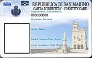 The San Marino identity card is an identification document of the Republic of San Marino, since January 2017 the electronic identity card has been in use.