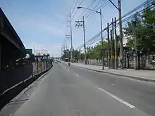 The South Luzon Expressway and elevated Skyway run for approximately 4 kilometers (2.5 mi) along San Martin de Porres's western boundary from Cucumber Road to Marfori Avenue as part of a high-standard highways network signed as E2.[7] The main access road into the village and its principal north–south corridor is a frontage road east of the expressway which is a national tertiary road known simply as East Service Road. The village's only road link with Don Bosco and the rest of Parañaque is the Bicutan crossing at the three-level Bicutan Interchange serving as the junction between the South Luzon Expressway, Doña Soledad Avenue and General Santos Avenue, and between the Skyway and Doña Soledad Avenue. Its main east–west access road starts from this interchange as a continuation of Doña Soledad Avenue into Central and Lower Bicutan towards the Pateros-Alabang Road and C-6 Road on the shores of Laguna de Bay.