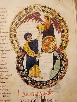The San Millán Beatus is an illuminated manuscript now held in the Real Academia de la Historia in Madrid as Cod. Emil. 33. It measures 35.5 cm by 23 cm and is a copy of the Commentary on the Apocalypse by Beatus of Liébana. Its illuminations are incomplete, but its text is one of the most complete surviving copies of the commentary. As well as Beatus' commentary, it contains saint Jerome's prologue on the Apocalypse and commentary on the Book of Daniel and extracts from Isidore of Seville's Etymologiae. It is made up of 282 bound folios - there are 48 miniatures on the first 228 pages and 1 miniature on the remaining 54 pages.[1]