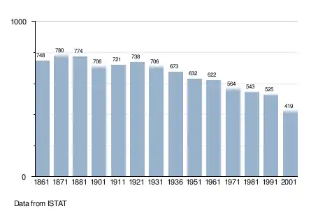 - "Superficie di Comuni Province e Regioni italiane al 9 ottobre 2011". Italian National Institute of Statistics. Retrieved 16 March 2019.