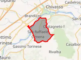 San Raffaele Cimena is a comune (municipality) in the Metropolitan City of Turin in the Italian region Piedmont, located about 15 kilometres (9 mi) northeast of Turin.