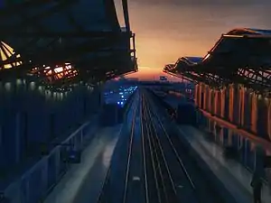 San Ramón station [2] is a metro station located on Line 4A of the Santiago Metro in Santiago, Chile between Santa Rosa and La Cisterna station. It lies along the Vespucio Sur Freeway, near its junction with Almirante Latorre Street. The station has disabled access. The station was opened on 16 August 2006 as part of the inaugural section of the line between Vicuña Mackenna and La Cisterna.[3]