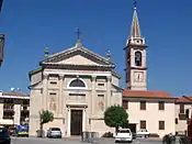 The current church, dedicated to St. Rocco was constructed at the end of the seventeenth century after a fire destroyed the original structure. It opened for worship in 1875 and was completed in 1911 with a Corinthian facade. Today it features a central altar from the seventeenth century, four side altars of baroque style and preserves a valuable painting of the Madonna of the Rose painted by Domenico Maccacaro in 1600.