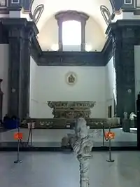 The interior has a Greek plan, and 17th century decoration. The altar is made of polychrome marble, while the transept to the right has the funereal monument of Giovanni Alfonso Bisvallo, sculpted by Girolamo D'Auria in 1617, which originally had a canvas by Luca Giordano.