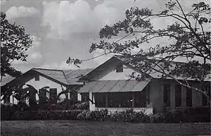 San Tomé was built as a service camp for Mene Grande in the late 1930s, with construction continuing through the 1950s. E.E. "Gene" Brossard, the MGO District Manager for Eastern Venezuela, founded the town.[2] The contractor Gustavo A. San Roman constructed it. Henri Pittier, a Swiss botanist, engineer, and teacher supplied some of the trees for the town.[2] North Camp was designed for the American staff and offices of MGO, while South Camp was designed for Venezuelan workers. Since North Camp was an industrial site within barbed wire fencing for security, a constricted atmosphere was created, and the residents of the camp were sometimes nicknamed "Santomaniacs".[16] An Industrial Hospital is located in San Tomé, the golf course Campo de Golf San Tomé is located just north of the town, and an elementary school is available for employee children.[3] For many years the principal landmark of the town was its red and white water tower.[17]