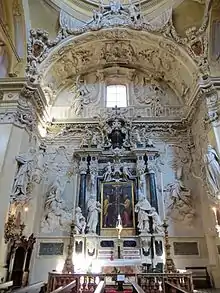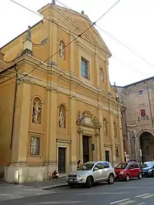 There is a Martyrdom of St John Nepomunk by Pietro Rubini and a Sacrifice of Isaac by a follower of Lionello Spada. Moreover, the church houses canvases by Matteo Rusca, Latino Barilli and Donnino Pozzi.[2][3]