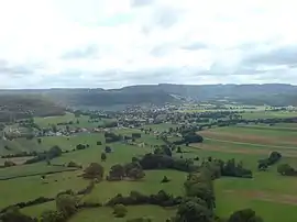 The commune lies on the first plateau of the river Doubs 55 km (34 mi) northeast of Besançon and 45 km (28 mi) southeast of Montbéliard.