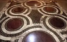 The opus sectile floor dates from 1278. This style of intarsiated pavement was created in the 12th century by the Cosmati family of stonecutters and widely copied throughout Rome in the 13th century.