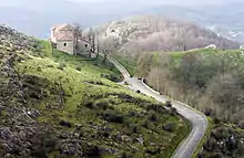 The Sanctuary of Our Lady of Oro is a place of worship in the Zuia Valley of northern Spain. It is about 3.5 kilometres (2.2 mi) from Murgia, in the center of the valley. Its altitude is 841 metres (2,759 ft) above sea level. From Murgia, the road towards Vitoriano reaches the sanctuary.[1] The first known document mentioning it dates to 1138.
