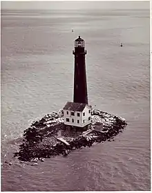 In December 2011 construction of a new island was completed. 1,400,000 yards (1,300,000 m) of sand was dredged from the sea floor and deposited around the lighthouse creating a 2,600 feet (790 m) by 500 feet (150 m), or approximately 15 acres (6.1 ha), island.[9] Less than a year later the $6,000,000 restoration of the island was washed away by Hurricane Isaac.[10]