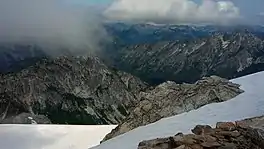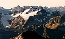 Sandalee Glacier is in North Cascades National Park and Lake Chelan National Recreation Area in the U.S. state of Washington, on the north and east slopes of McGregor Mountain.[2] Sandalee Glacier originates in several cirques and extends from 7,800 to 6,800 ft (2,400 to 2,100 m) above sea level across a distance of almost 1.5 mi (2.4 km). In 1993, the Sandalee Glacier had an area of .2 km2.[3] The National Park Service is currently studying Sandalee Glacier as part of their glacier monitoring project.[3] Between 1993 (when monitoring began) and 2013 the glacier lost ~6 m of thickness.[4]