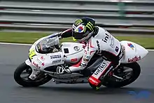 For the 2011 season, Cortese moved to Dirk Heidolf's Racing Team Germany outfit, as a single-bike entry.[5] He took second-place finishes in Qatar and Portugal, before taking his first Grand Prix victory – in his 109th start – in the Czech Republic, having battled with Johann Zarco in the closing stages of the race.[6] Cortese eventually ended the season fourth in the championship.