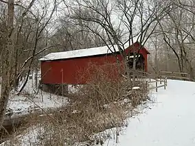 Sandy Creek Covered Bridge State Historic Site is a publicly owned property in Jefferson County, Missouri, administered by the Missouri Department of Natural Resources, preserving the Sandy Creek Covered Bridge.[4] The bridge is one of four remaining covered bridges in Missouri, which once numbered about 30. It is a relatively rare example of a Howe truss bridge, one of three in Missouri. The covered bridge is named for Sandy Creek, which it crosses, and was added to the National Register of Historic Places in 1970.[5]