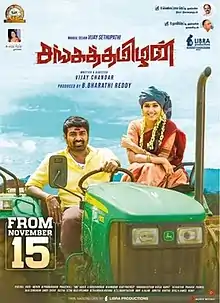 Sangathamizhan (transl. Ancient Tamilian) is a 2019 Indian Tamil-language action drama film[2] written and directed by Vijay Chandar. The film stars Vijay Sethupathi with Raashi Khanna and Nivetha Pethuraj while Soori, Nassar, Ravi Kishan, and Ashutosh Rana play pivotal roles.[3] The music is composed by Vivek-Mervin, and cinematography was handled by R. Velraj. Principal photography reportedly commenced during February 2019 in Hyderabad. The film released on 15 November 2019 to mixed reviews. The film was a commercial failure at the box-office.[4][5]