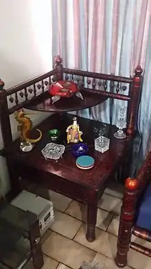 Sankheda furniture is colourful teak wood furniture of Gujarat, India, treated with lacquer and painted in traditional bright shades of maroon and gold.[1] It is made in Sankheda village and hence its name.[2] The village is located about 45 kilometres (28 mi) from Vadodara.[3]