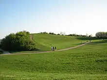 The park is the largest urban green space in Lund, surrounded by residential areas. It is a popular vantage point, offering a view of the town and its surroundings towards Öresund. Lundakarnevalen use the place to organize social events. There is an annual hill running competition, Sankt Hans Extreme, in the hills.[4] An amphitheatre is planned to be constructed in the hills.[5] The area is used by surrounding schools and preschools as an outdoor classroom.[6]