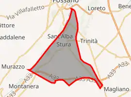 Sant'Albano Stura borders the following municipalities: Fossano, Magliano Alpi, Montanera, Morozzo, Rocca de' Baldi, and Trinità.