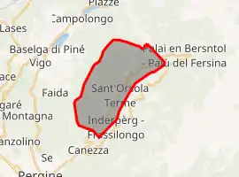 Sant'Orsola Terme (Mòcheno: Oachpergh) is a comune (municipality) in Trentino in the northern Italian region Trentino-Alto Adige/Südtirol, located about 15 kilometres (9 mi) northeast of Trento. As of 31 December 2004, it had a population of 933 and an area of 15.4 square kilometres (5.9 sq mi).[3]