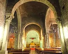 A nunnery was founded by Count Sunyer I and his wife Riquilda Toulouse next to an ancient church dedicated to San Saturnino. The church was consecrated on 16 June 945 by Bishop Guilarà.[1] The first abbess was Adelaide, widow of Sunifredo of Urgel. In 985, the monastery was attacked by the troops of Almanzor. Count Borrell II restored it; the new abbess was Adalet. The monastery grew slowly. At the end of the 10th century, the community was composed of a dozen religious. In the following century, the number rose to 20, most of them daughters of nobles of the time. The powerful religious families were responsible to financially support the monastery. In 1147, a new, larger church, encompassing both the monastery and the old church dedicated to St. Sadurní, was consecrated.[2]