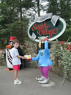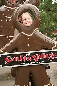 In 1986, Jack Barth of Spy wrote that Santa's Village has a "strange arrangement", in that to take pictures, people poke their heads out of a cake made of plaster.[6] The grandchildren of Normand and Cecile Dubois manage the park. They added a "Polar Theater" with 3D shows that include elves that dance and a tree that sings, as well as "Skyways Sleighs", which transport people through the sky to different parts of the park.[4]