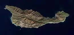 Santa Cruz Island (Spanish: Isla Santa Cruz, Chumash: Limuw[1]) is located off the southwestern coast of Ventura, California, United States. It is the largest island in California[2] and largest of the eight islands in the Channel Islands archipelago and Channel Islands National Park.[3] Forming part of the northern group of the Channel Islands, Santa Cruz is 22 miles (35 km) long and 2 to 6 miles (3 to 10 km) wide with an area of 61,764.6 acres (249.952 km2).